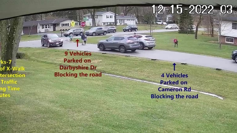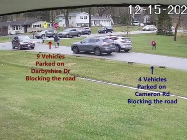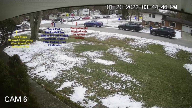 9 Vehicles - Parked and Blocking Traffic on Darbyshire Dr (Camera 6).