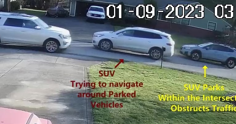 SUV - Trying to navigate around the Parked SUV on Darbyshire.