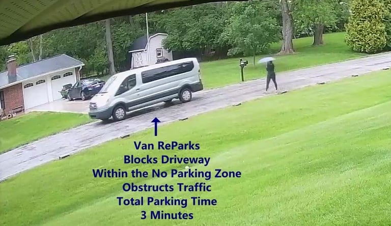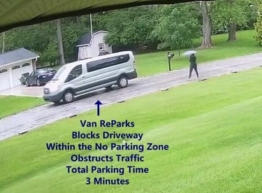Van - Parks blocking the Driveway at 4301 Cameron Rd, within the No Parking Zone, obstructs Traffic.