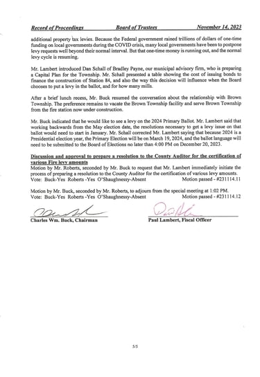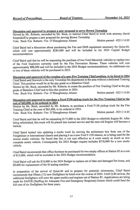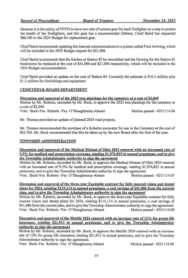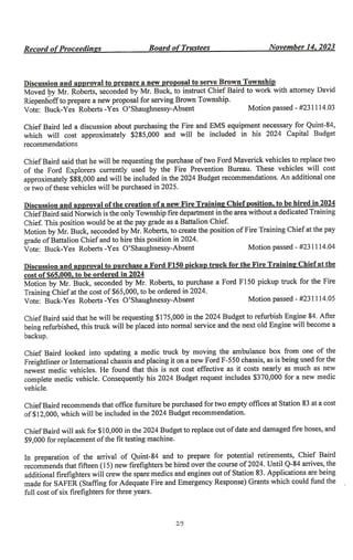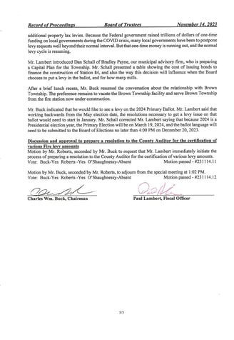 Norwich Township Special Meeting November 14, 2023: