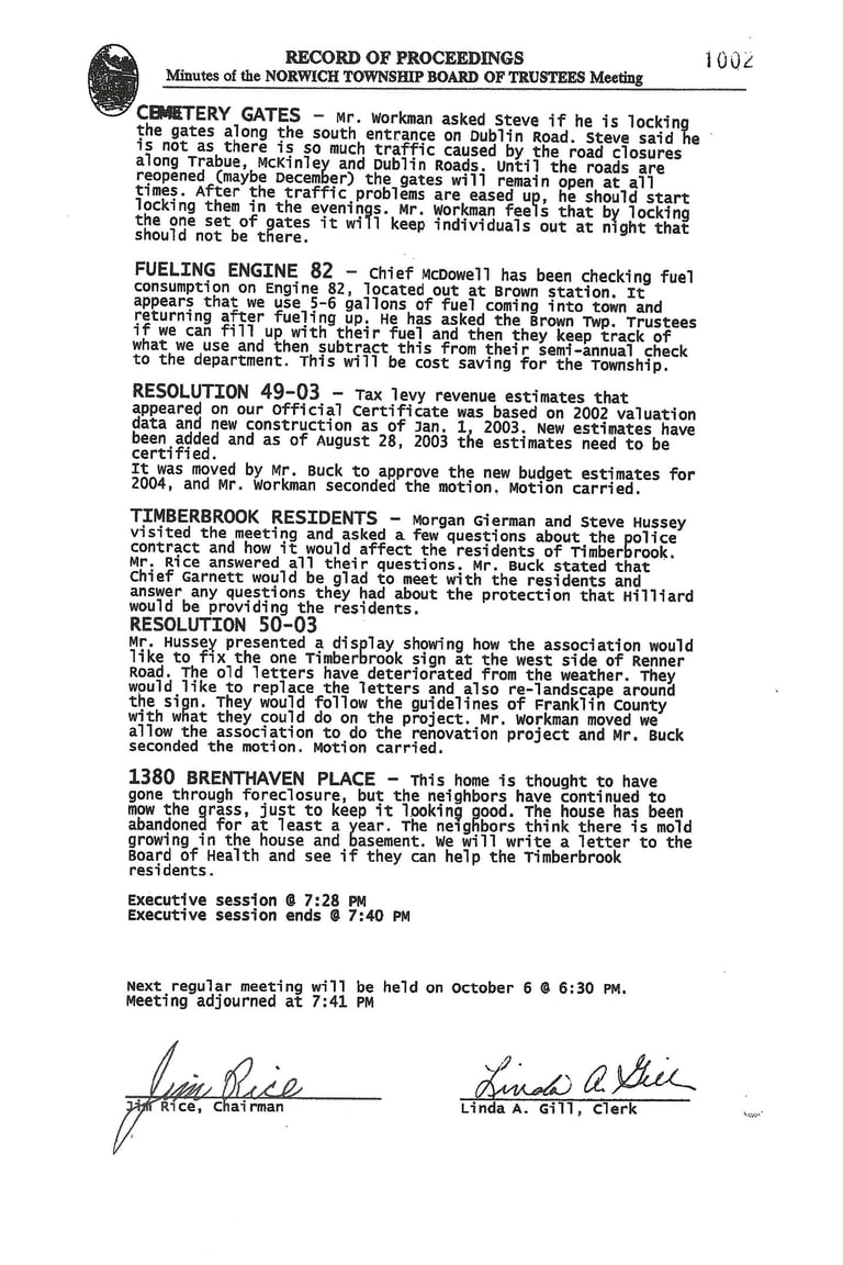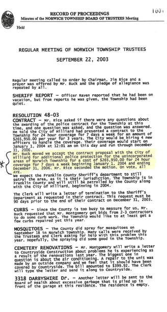 Norwich Township Meeting Minutes - September 22, 2003: