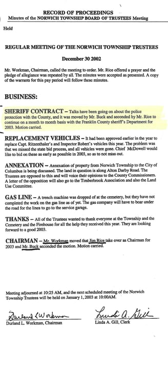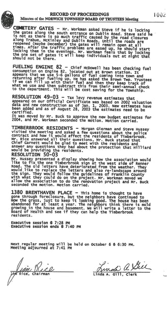 Norwich Township Meeting Minutes - December 30, 2002: