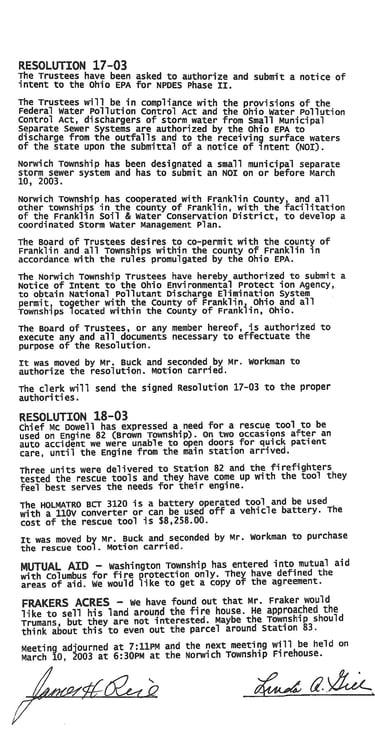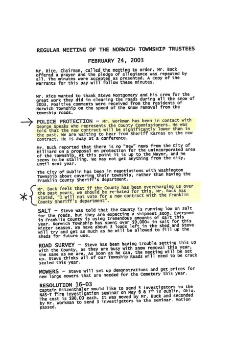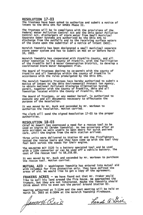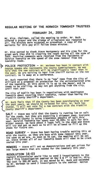 Norwich Township Meeting Minutes - February 24, 2003:
