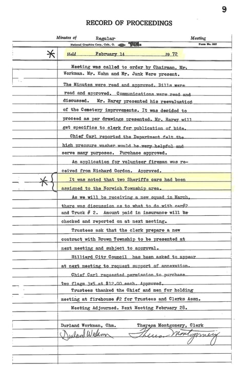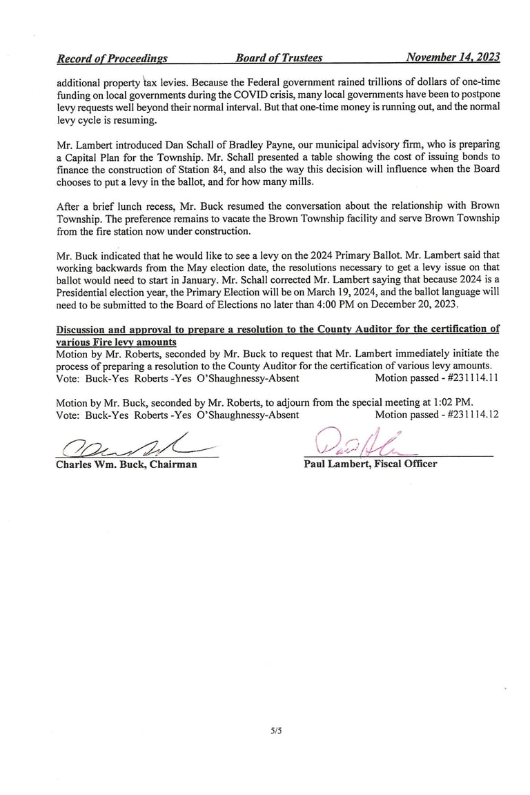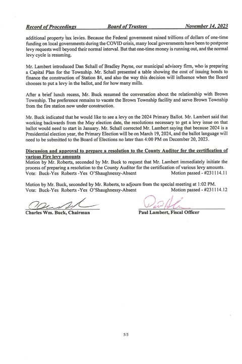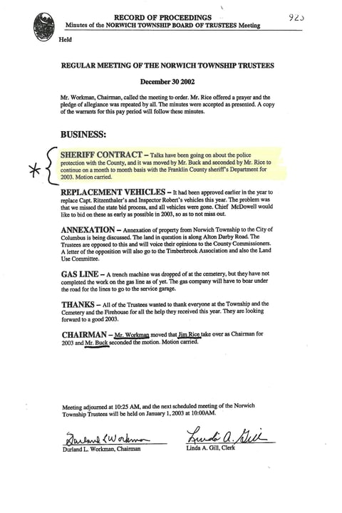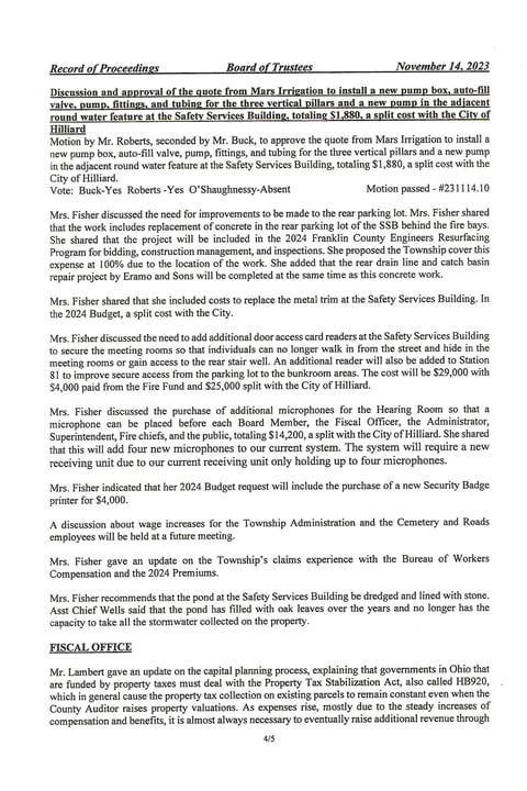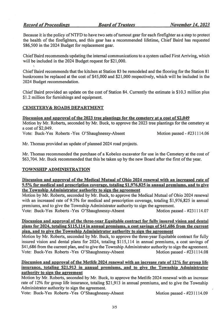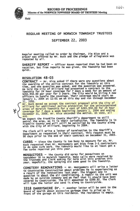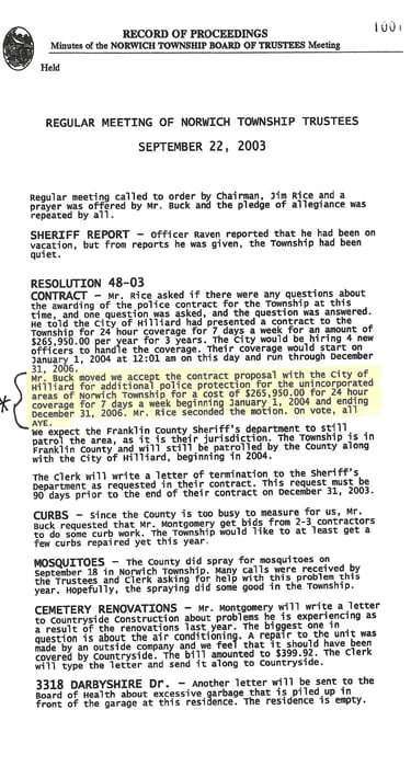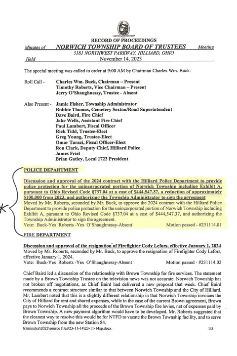 This is where they discussed and approved the 2024 Hilliard Police Contract