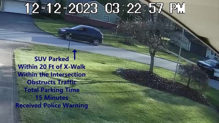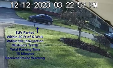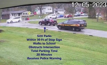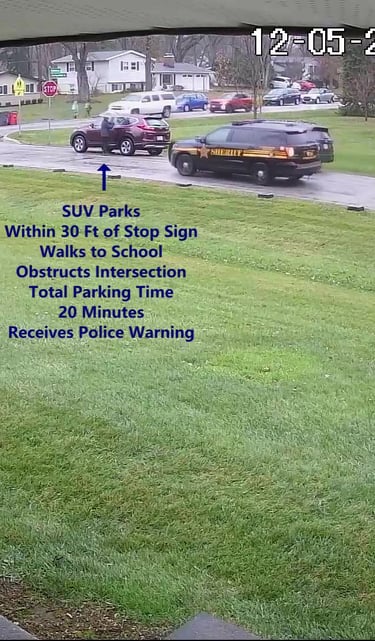 After receiving warnings from the Hilliard Police and Sheriff Departments these people continued to park within the No Parking Zone, within 20 Ft of X-Walks and within 30 Ft of Stop Signs.