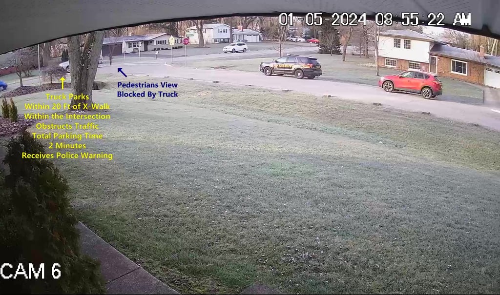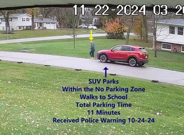 After receiving warnings from the Hilliard Police and Sheriff Departments these people continued to park within the No Parking Zone, within 20 Ft of X-Walks and within 30 Ft of Stop Signs.