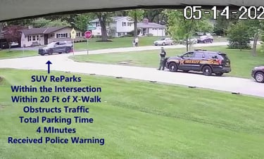 SUV - ReParks within 30 Ft of Stop Sign.