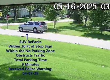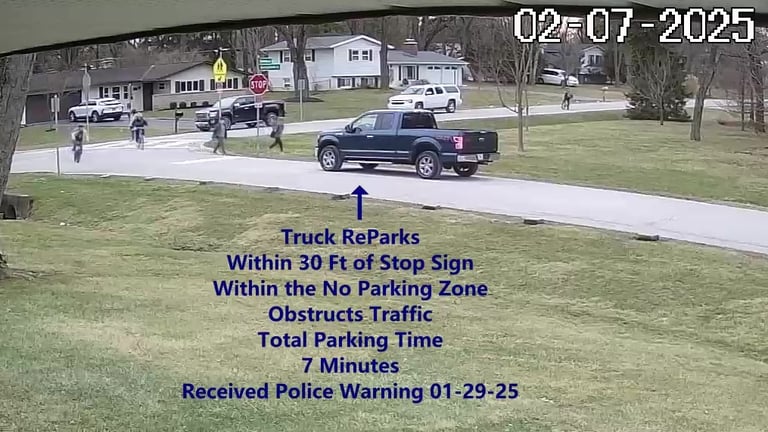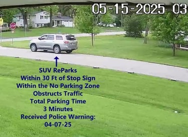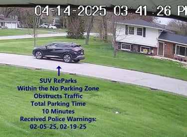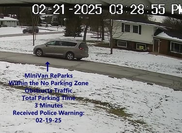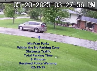 After receiving warnings from the Hilliard Police and Sheriff Departments these people continued to park within the No Parking Zone, within 20 Ft of X-Walks and within 30 Ft of Stop Signs.