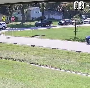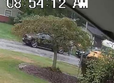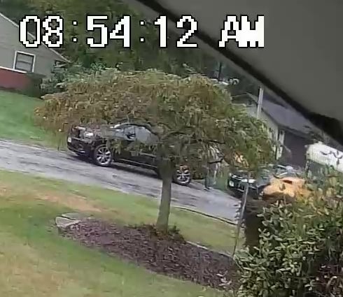Black SUV - Parks on Cameron Rd, obstructs Traffic, walks over to the school - Total Parking Time was 23 minutes.