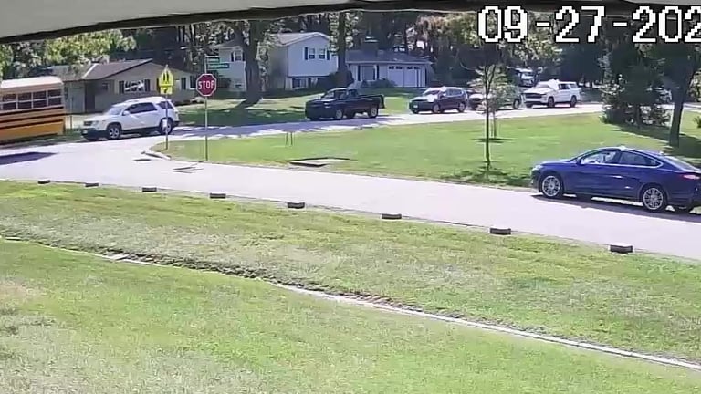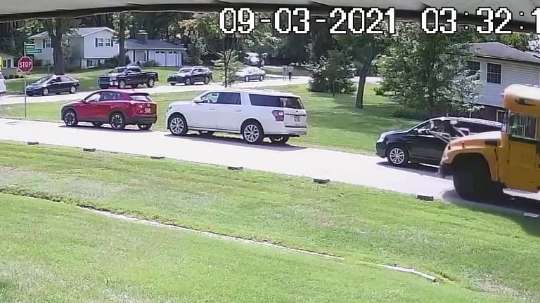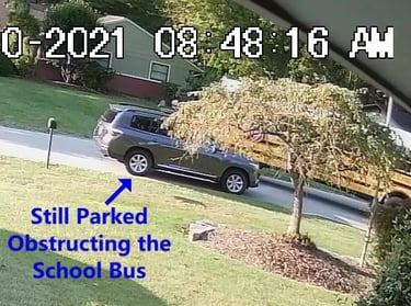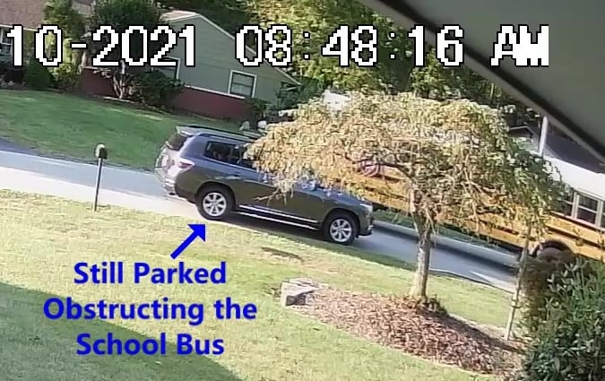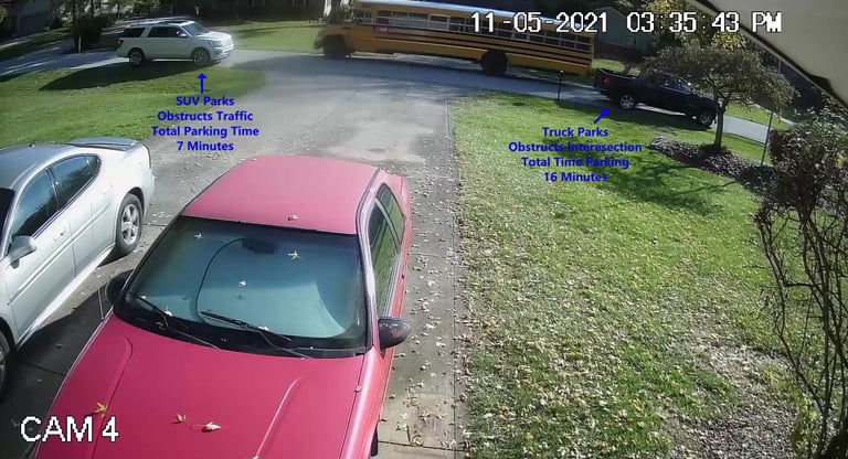 School Bus is blocked by all of the Parked Vehicles on Darbshire Dr.