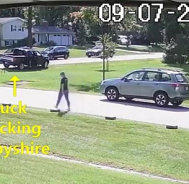 Truck - Parks on Darbyshire Dr, walks over to the school, obstructs Traffic - Total Parking Time was 14 minutes.