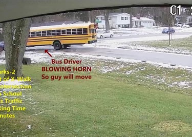 Bus Driver has to navigate around Parked Vehicles on Darbyshire Dr.