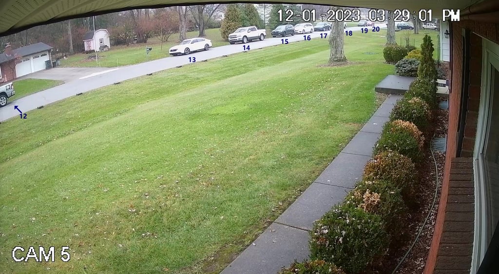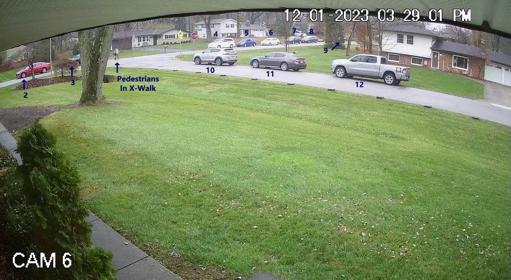 Camera 5 - Shows Vehicles 12 thru 20 on Cameron Rd.