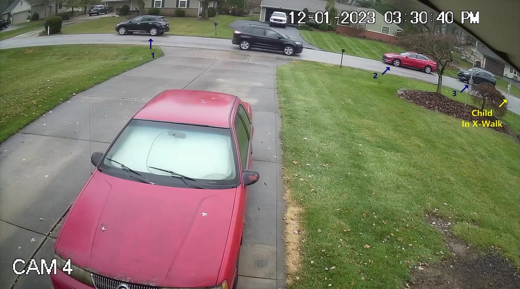 The above 3 Camera shots are of Darbyshire Dr and Cameron Rd for 12-01-23.
