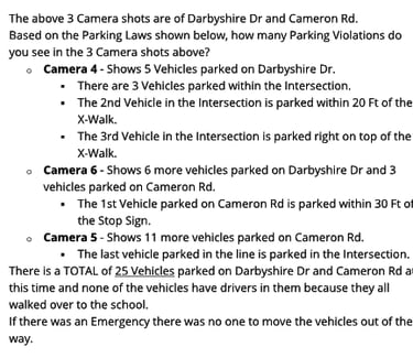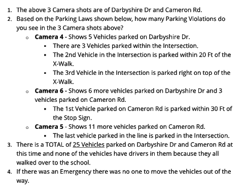 Camera 6 - Shows Vehicles 2 thru 12 on Darbyshire Dr and Cameron Rd.