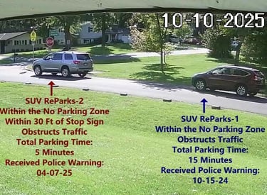 Received Parking Warning from Police on 10-15-25.