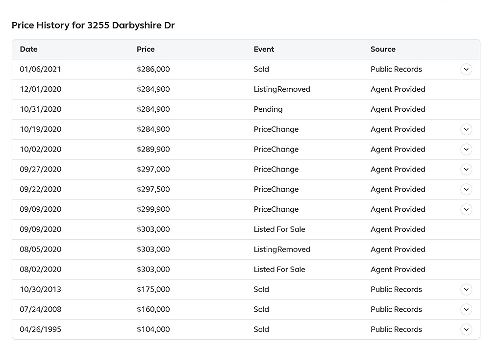Per the chart below, the house was appraised at $303,000 and listed on 08/02/2020. Because of the traffic and parking issues in front of the house after the "No Parking Signs" were removed the price dropped all the way down to $284,900 losing $18,100 in value.