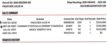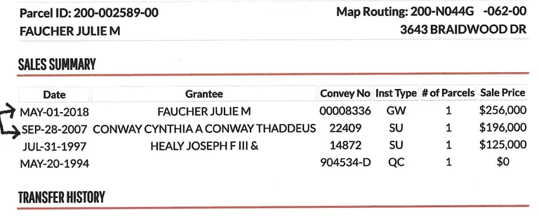 Mrs. Conway and her husband purchased their previous home in 2007 - see Auditor's Report below for 3643 Braidwood Dr.