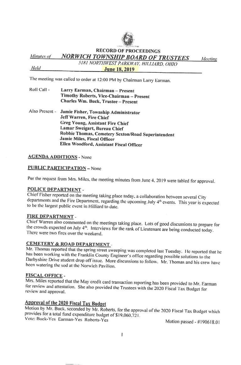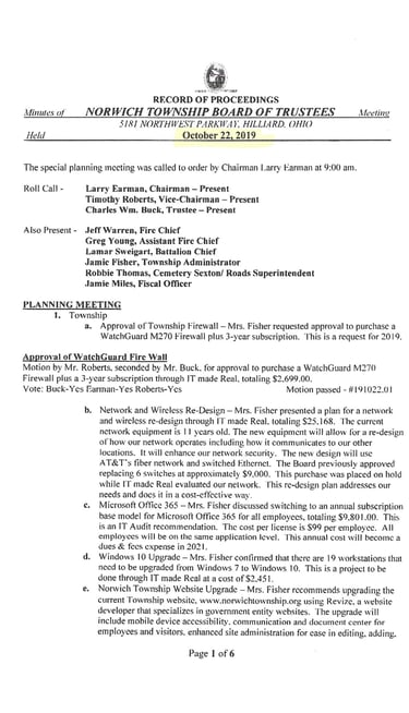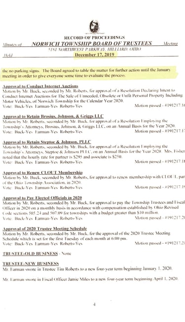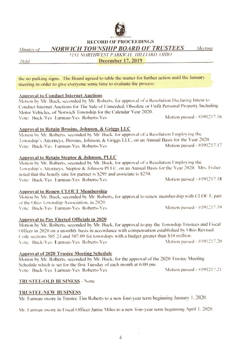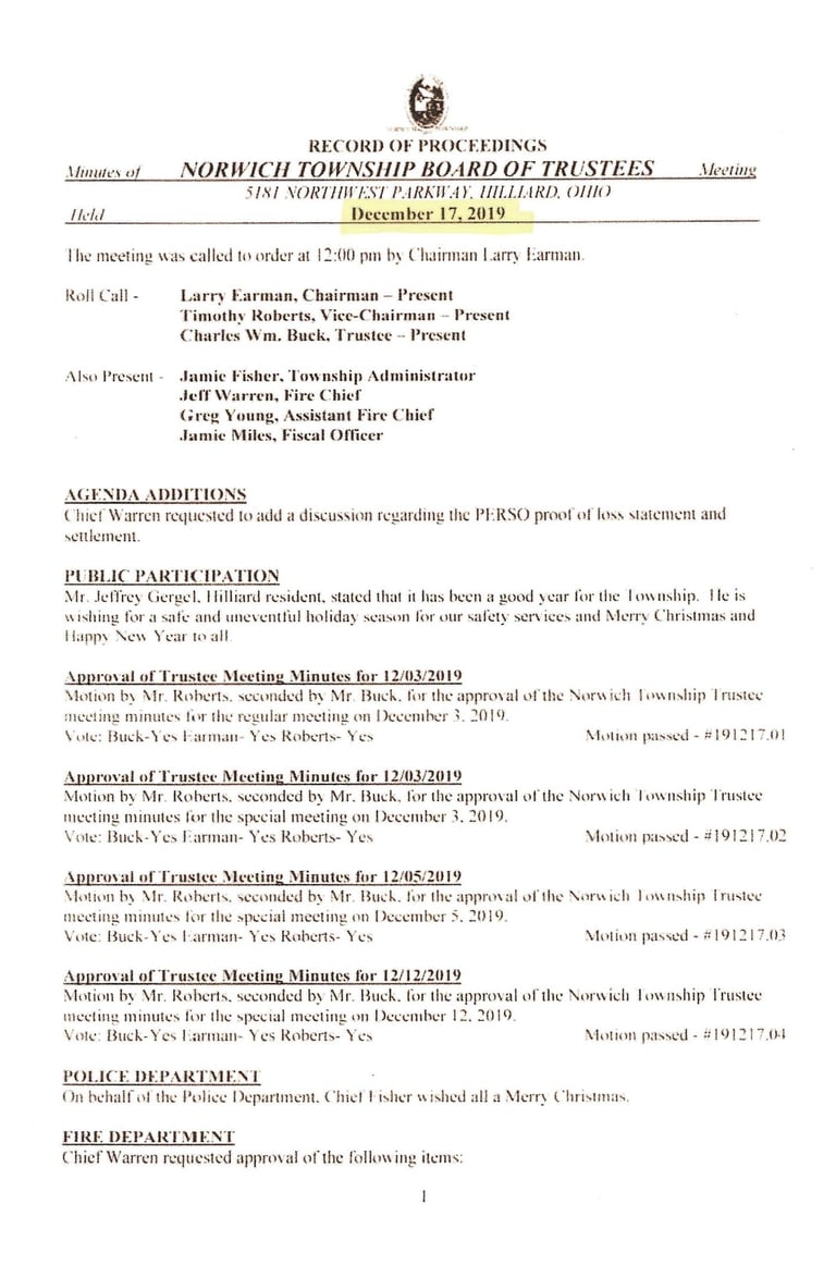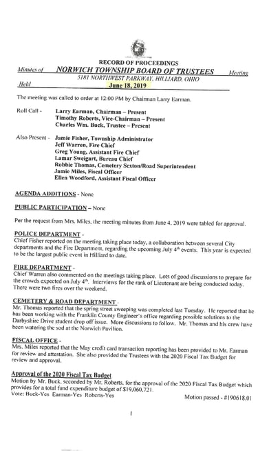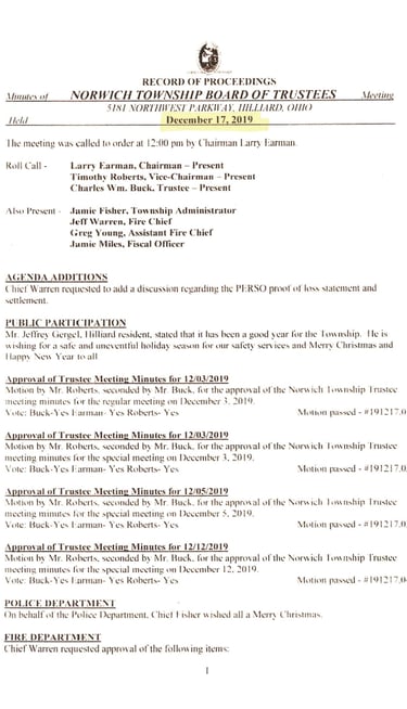 Mrs. Jamie Miles at the time these Meetings took place, worked in the Norwich Township Office as the Fiscal Officer.