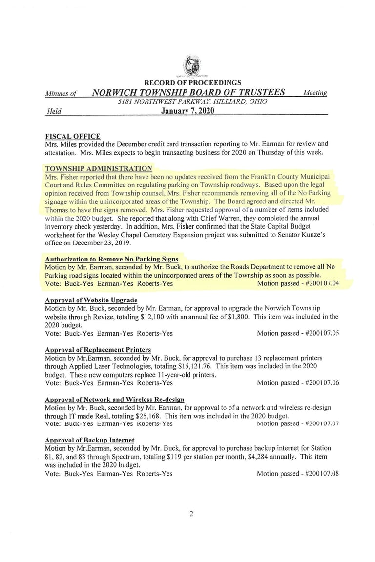 Jamie Fisher reported that there have been no updates received from the Franklin County Municipal Court and Rules Committee on parking on Township roadways.