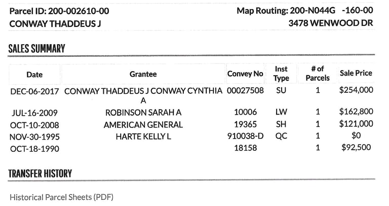 Mrs. Conway and her husband purchased their current home in 2017 - see Auditor's Report below for 3478 Wenwood Dr.